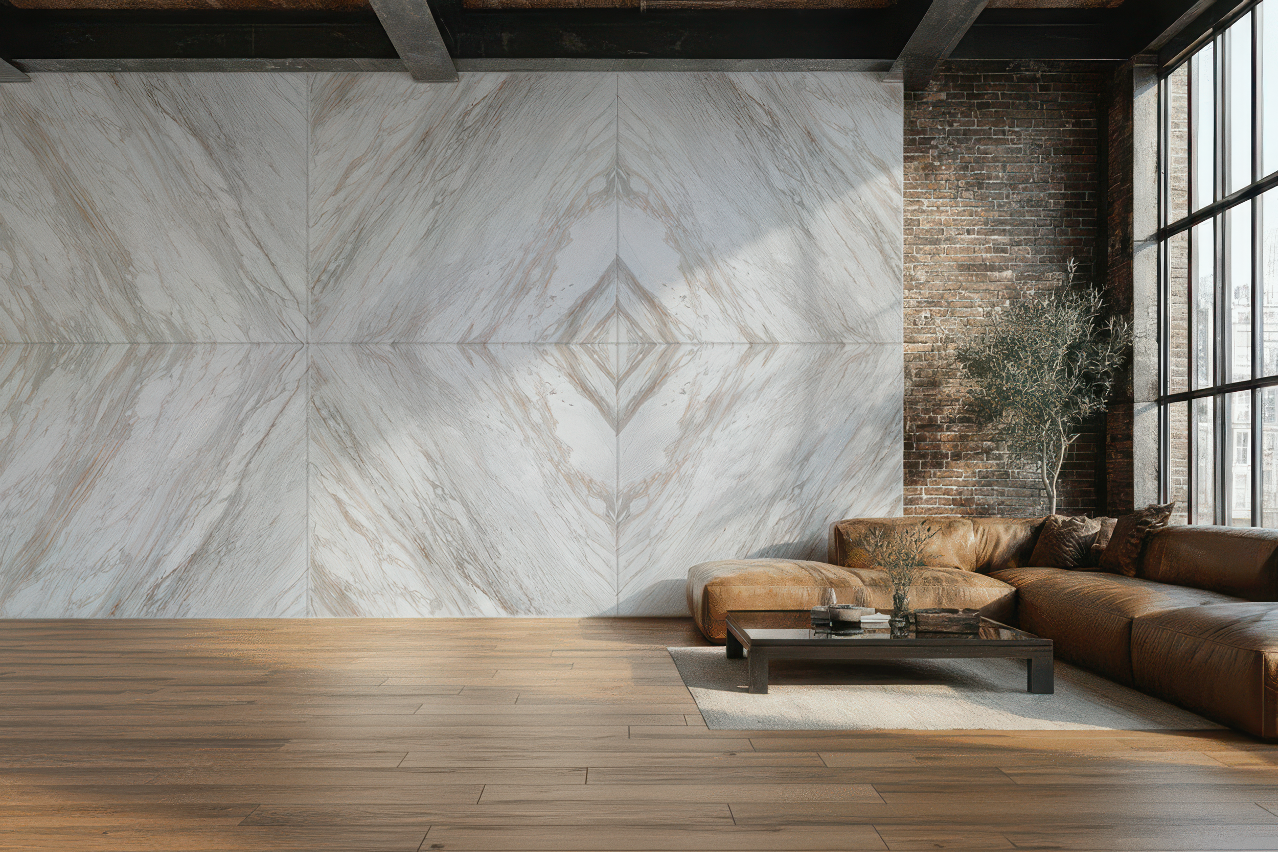 A close-up of a textured wall surface with gray and beige tones and irregular patterns.